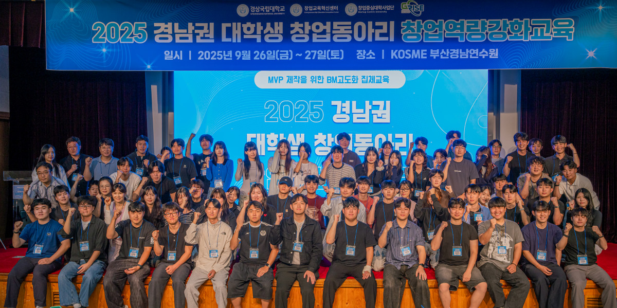 경상국립대학교(GNU·총장 권진회) 창업지원단(단장 최병근)은 9월 26~27일 중소벤처기업진흥공단 부산경남연수원(원장 정민정)에서 ‘2025 경남권 대학생 창업동아리 창업역량강화교육’을 개최했다.
