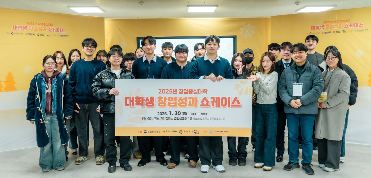 경상국립대학교(GNU·총장 권진회) 창업중심대학사업단(단장 최병근)은 글로컬대학사업단 기업가정신센터(센터장 김가영), 창업교육혁신센터(센터장 성상현)와 함께 대학생과 청년 창업자의 창업 성과를 공유하고 그 경험을 확산하기 위해 ‘대학생·청년 창업성과 쇼케이스’를 1월 30일 GNU컨벤션센터 1층에서 공동 개최했다.